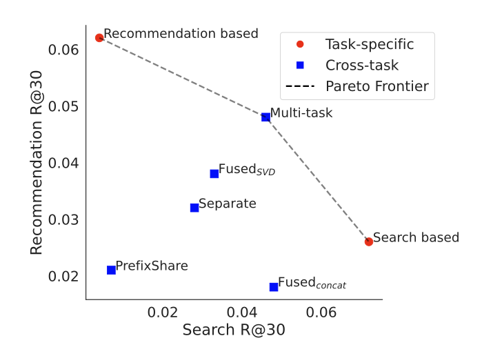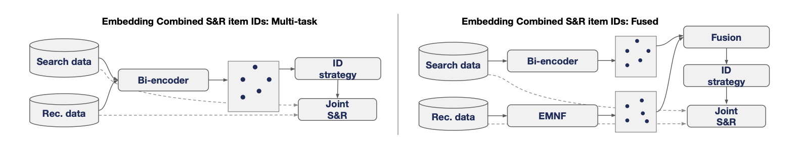 - Multi-task: bi-encoder를 검색()과 추천()을 동시에 학습