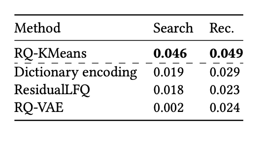 - RQ-VAE가 k-means보다 나쁜 건 다른 논문에서도 일관적으로 언급