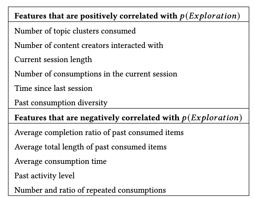 - 즉 exploration ←> familiarity 의도를 모델링한다면 사용자가 소비한 아이템 가 처음 보는 크리에이터의 영상이었을 때 exploration label 1로 라벨링을 한다는 것