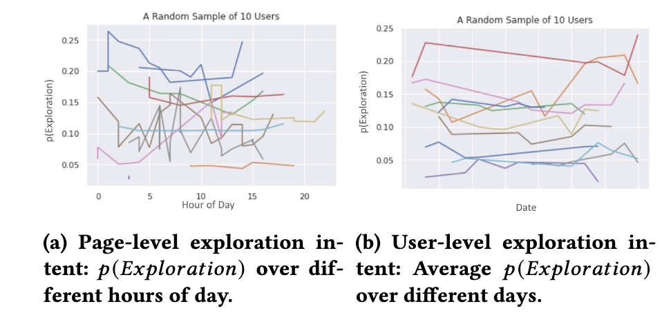 - exploration 의도는 하루 시간대에 따라 매우 동적으로 변화지만 장기간을 평균내면 크게 변하지 않음(안정적인 유저별 특성이 존재)