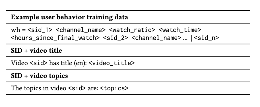 - Ground-truth: 유저 로그에서 클릭된 영상의 SID 토큰