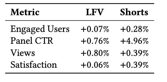 - 입력: 1,536 tokens (최근 100회 시청 이력 포함), July 2025 YouTube 프로덕션 데이터
