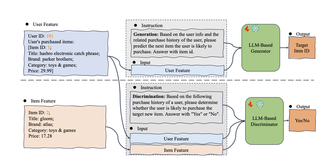 • 입력: User feature (User ID, 구매 이력 등) + Prompt instruction