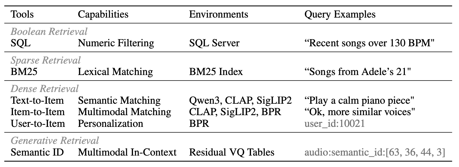 - 문제: 단일 retrieval 방식에는 한계가 있음 → 실제 프로덕션 추천 시스템은 multi-stage, routed retrieval-reranking 파이프라인을 사용하며 다양한 운영 조건(장르, 무드, 신곡 여부 등)을 동시에 만족해야 함