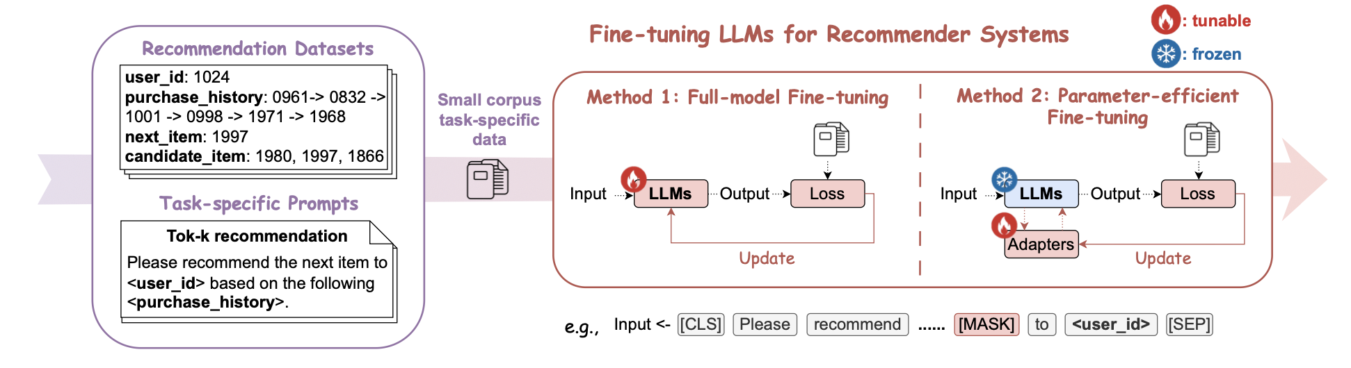 - 모델이 모델이 추천 관련 태스크를 더 잘 수행할 수 있도록 다양한 지시문(Instruction)과 입력, 정답 데이터(출력)의 쌍을를 학습하는 방식
