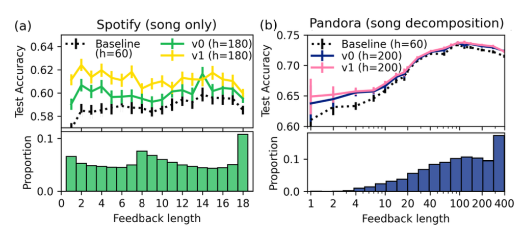 Pandora, Spotify 모두 저피드백 유저에서 가장 큰 정확도 향상