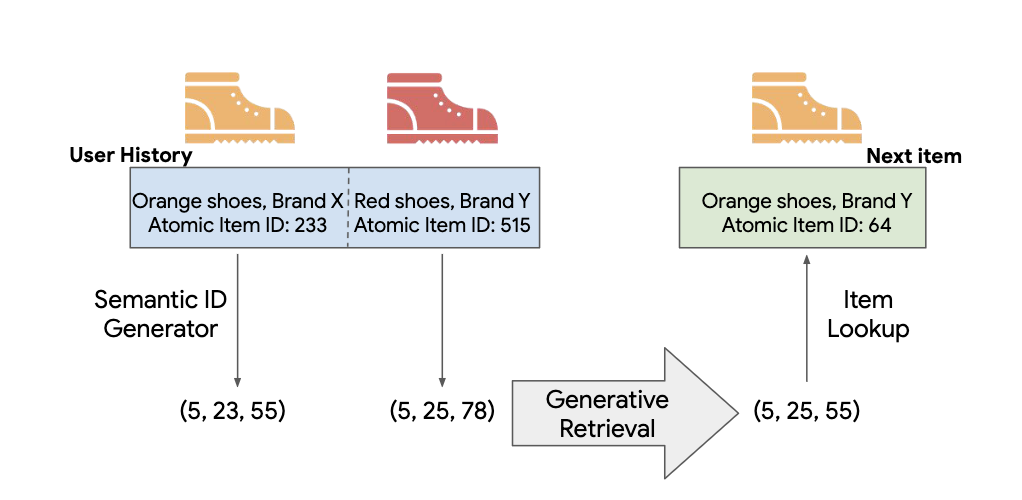 모델은 이 시퀀스를 입력받아 사용자가 다음으로 상호작용할 item n+1의 semantic ID (cn+1,0,⋯,cn+1,m−1) 를 예측하도록 학습됨