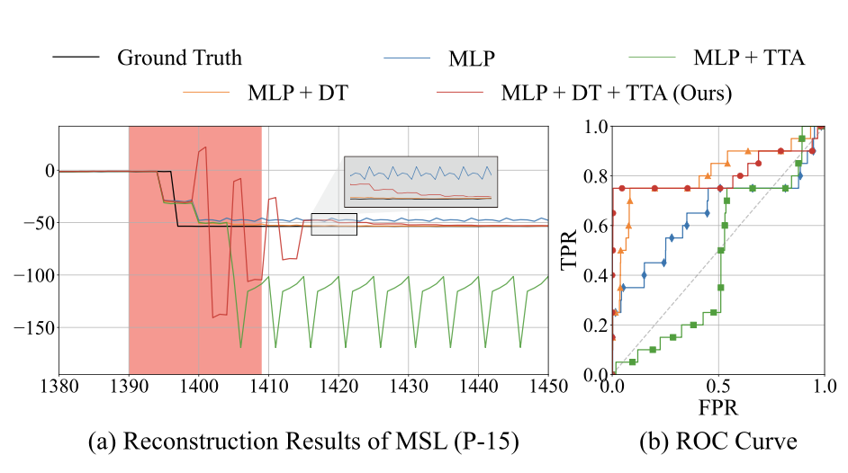 - 확대된 부분을 잘 보면, MLP+DT+TTA와 그냥 MLP의 비교 - 그냥 MLP(파란색)은 trend shift가 일어난 후에도 복원 오차가 계속적으로 발생함
